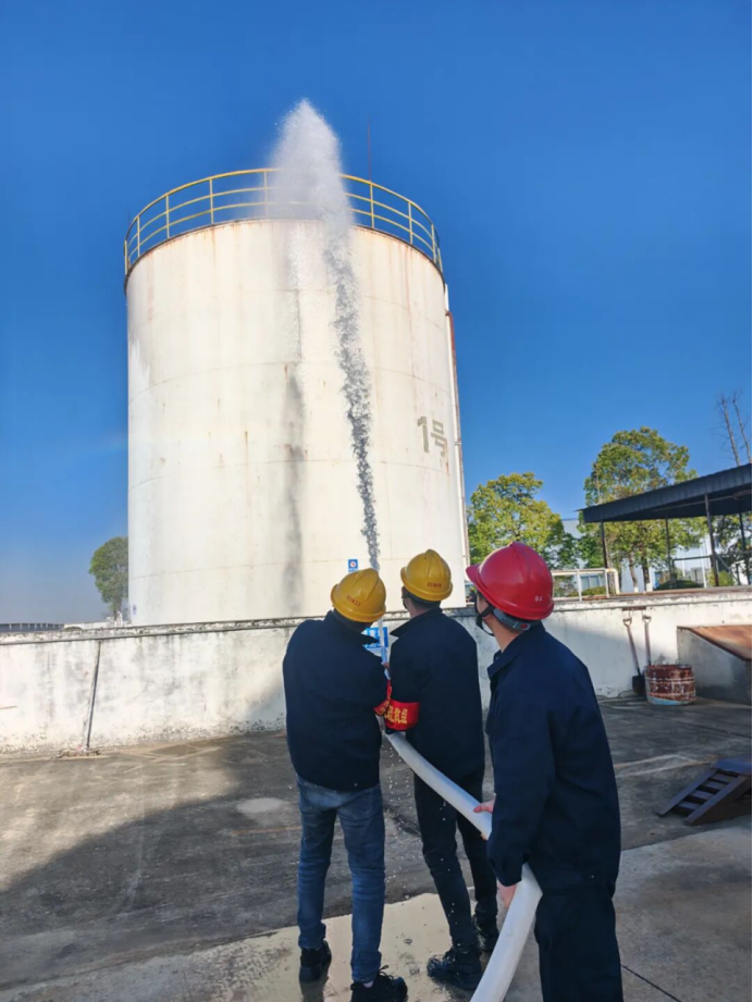 演练以“强化实战能力、完善应急体系”为核心,聚焦生产罐区、受限空间、危废暂存区等关键部位,设置泄漏火灾处置、中毒救援、危废泄漏防控等6个专项科目。参加演练的有公司安委会成员、兼职消防队、车间员工及设备维修人员等近百名人员,全程协调有序,各环节无缝衔接、高效推进。