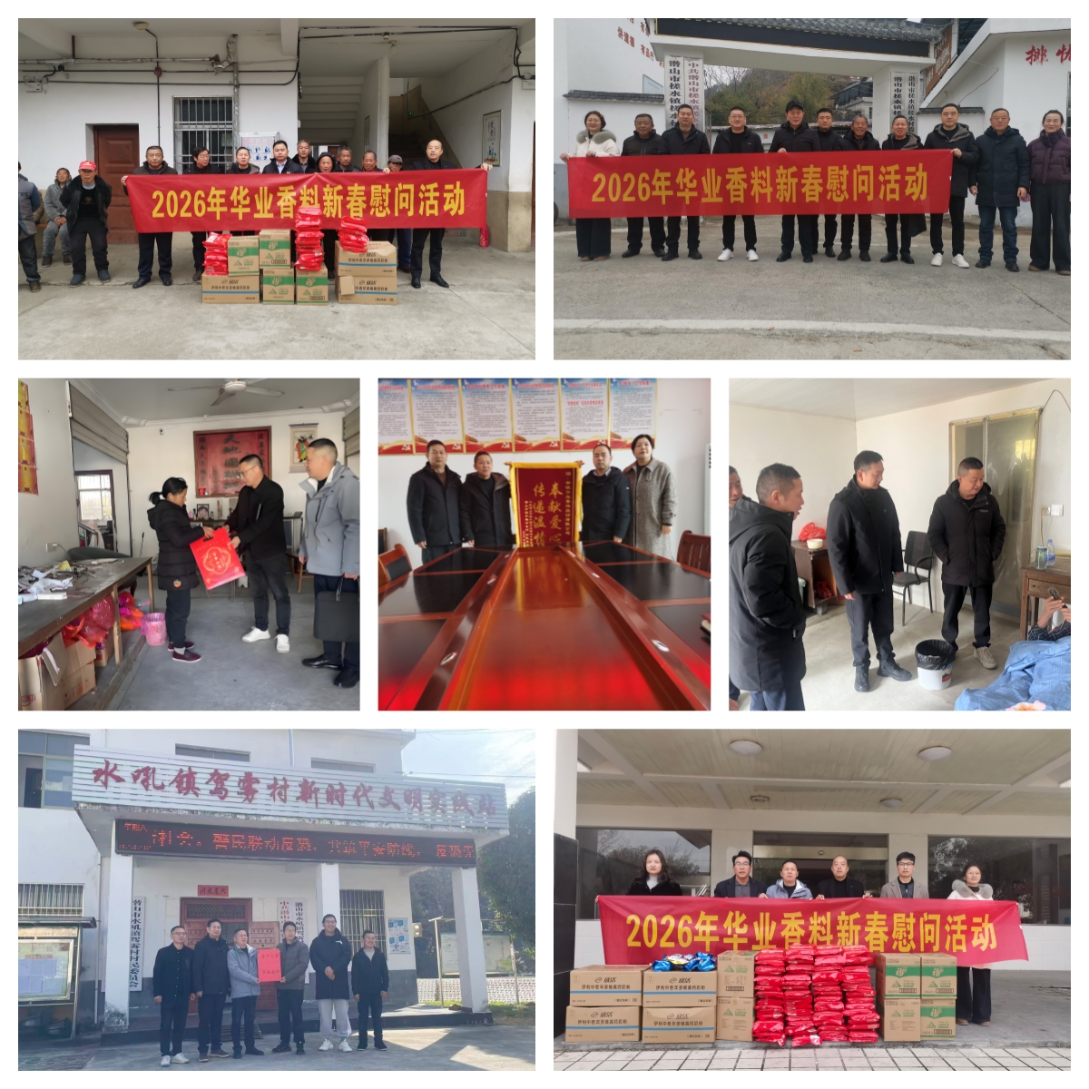 时入腊月,新春渐近,华业香料党总支联合工会牵头开启2026年暖冬慰问行动,先后赴槎水镇、梅城镇、水吼镇等乡镇,为群众送去新春祝福与爱心礼包。